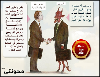 منقول من مدونتي .. اقتباس: بسم الله الرحمن الرحيم هاقد قرب حلول الشهر الكريم رمضان .. وهذا يعطي معاني مختلفة لفئات متعددة من الناس .. الفئة الاولى القليلة : هذه الفئة تؤمن بان رمضان قد وضع للعبادة والتذكر وقراءة القرآن الكريم والتقرب الى الله اكثر بقيام الليل وصلاة التراويح والصوم والصدقة والدعاء .. فبارك الله في هذه الفئة وزاد من خيرها .. ![]() الفئة الثانية او الكثيرة : هذه هي الفئة التي ساتكلم عنها في هذه التدوينة .. انها فئة اعكسها !! .. في رمضان المفترض ان نقرا القرآن ونذكر الله تعالى ليلا نهارا >>> في رمضان يذهب اعكسها الى الحفلات ويشاهد المحرمات ليلا نهارا .. ![]() في رمضان المفترض ان نسهر لقيام الليل >>> في رمضان يسهر اعكسها لمتابعة المسابقات الرمضانية .. او في المقهى لتدخين الشيشة مع اصدقائه .. ومن يدري ؟؟ لربما يتابع فيلما مشوقا او حلقة اخيرة من مسلسل ممتد لثلاثة شهور .. وهل يفوتها ويقوم لقيام الليل !! ![]() في رمضان .. الحكمة من الصيام هي الاقتصاد في الاكل وعدم الاسراف فيه >>> في رمضان اعكسها يقوم بجلب جميع اصناف الاكل والطعام من نشويات وخضروات وحلويات ودهنيات .. ويصفها صفا على طاولة الافطار .. ولا احد يدري ما السبب ؟؟ هل هو جائع لهذه الدرجة ؟؟ ام انه يريد ان يتباهي بسفرته الرمضانية ؟؟ ام يريد ان يصاب بالتخمة فلا يستطيع التحرك قيد انملة ؟؟ وهذا طبعا ما يريده وسيفعله امام شاشة التلفاز .. واحيانا يكون بنفسه لا يعرف السبب .. فقط لمجرد دافع في نفسه !! ![]() في رمضان .. المفترض ان يعرض التلفاز وان يشارك مستخدموا الويب بمواضيع اسلامية تفيد الصائم في هذا الشهر الكريم >>> في رمضان اعكسها من القنوات يقومون بعرض ما غنى وشكى وحكى وسئل وهز من المسلسلات والبرامج وهم يقولون بكل وقاحة "في الشهر الفضيل .. الشاشة الافضل " .. اريد فقط ان اعرف بماذا فضلت هذه الشاشة ؟؟ هل بصفاقتها الواضحة في عرض العاري والفاجر ؟؟ ام بوقاحتها في تجميع كل هذه البرامج في هذا الشهر الكريم وعرضها فيه .. والمفترض ان لا يعرض منها شيئا في هذه الشهر بالذات ؟؟ ... اما عن مستخدمين الويب من اعكسها .. فحدث ولا حرج .. ذاك ينشر موضوعا عن طبخة رمضانية .. وذاك يضع مقالا عن مسابقة رمضانية .. لا وبل يوضحون لك مواعيد البرامج بالتفصيل الممل حتى تكون متابعا للفسق والملاهي لحظة بلحظة .. ![]() الان فقط عرفتم لماذا سميت هذه الفئة "في رمضان .. اعكسها !! " انهم يعكسون جميع التصرفات المطلوبة في هذا الشهر المبارك .. لا وبكل صفاقة يدافعون عن انفسهم بانهم فقط يتسلون !! اي تسلية هذه !! لعنة الله عليهم وعلى كل من ساعدهم .. آمين باذن الله .. والسلام عليكم ورحمة الله وبركاته |