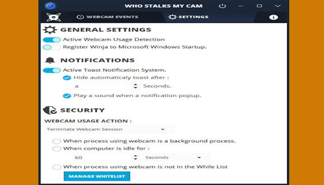 <div> ![]() البرنامج الذي سنستعرضه هو برنامج Who Stalks My Cam والذي يعتبر من البرامج الهامة والتي يجب تثبيتها على حاسوبك، فمهمة البرنامج تكمن في مراقبة واكتشاف كل البرامج التي تحاول تشغيل كاميرا حاسوبك مع إتاحة الإمكانية لمنع هذه البرامج. ![]() البرنامج يتميز بإنه يقوم بتنبيهك عندما يقوم أي برنامج بمحاولة الوصول إلى الكاميرا عن طريق نافذة منبثقة، وبالتالي ستتمكن من إغلاق الكاميرا بنقرة واحدة فقط. كما البرنامج يحوي على ميزة تدعى "القائمة البيضاء" والتي ضمنها يمكنك إدراج كل البرامج التي تثق فيها والتي ستسمح لها باستخدام الكاميرا على حاسوبك. ![]() بالإضافة إلى كل ذلك فإنه يمكنك جعل البرنامج يقوم بالكشف عن أي استخدام لكاميرا الحاسوب في الوقت الحقيقي، وهو ما سيؤدي إلى إمكانية تدارك الأمر قبل حدوث أي تجسس عليك. ![]() ![]() رابط تحميل برنامج Who Stalks My Cam |
