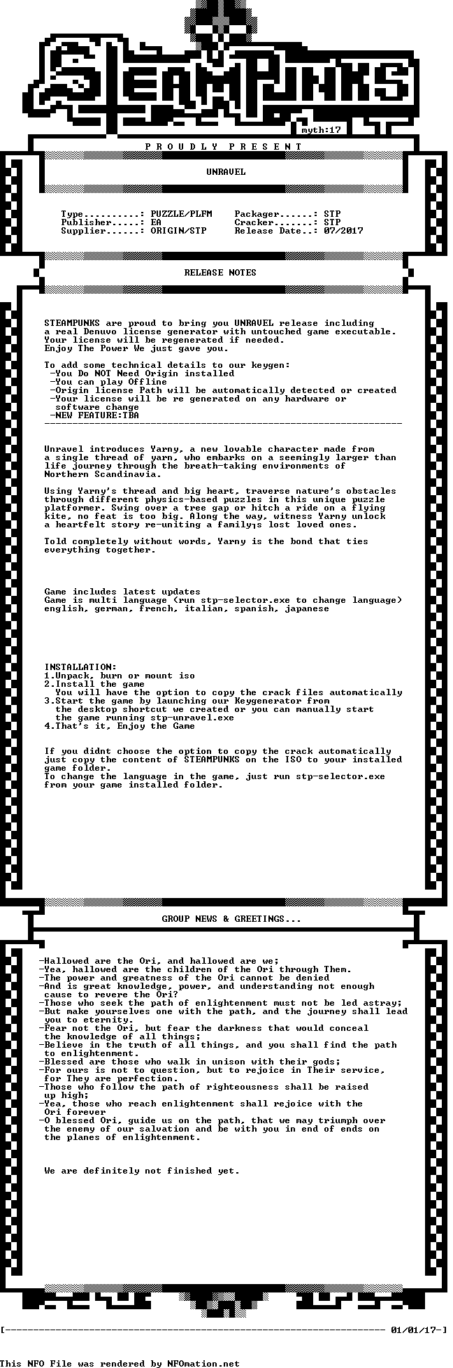 <div> ![]() UNRAVEL-STEAMPUNKS ![]() ![]() ![]() ![]() ![]() ![]() ![]() ![]() ![]() ![]() ![]() ![]() ![]() كود PHP: MINIMUM SPECIFICATIONS OS: Windows 7, Windows 8.1, Windows 10 - all 64-bit Memory: 4 GB RAM Processor: Intel Core 2 Duo @ 2. 4GHz or AMD Athlon Phenom X2 @ 2.8Ghz AMD Graphics – requires DX11 class hardware and DX11 feature set • Desktop: GeForce 450GT or Radeon HD 5750 or better, with 512Mb or greater • Laptop (Mobile): GeForce GTX 745M, AMD Radeon HD 8650G or Intel 4400 or better For the best gameplay experience, we recommend using an Xbox 360 Controller or Xbox One Wireless Controller. حجم اللعبه حوالى 2.5 جيجا بيت ![]() اللعبه مرفوعه على 1 رابط تحميل ![]() ![]() clicknupload https://clicknupload.org/6yh7crw01cbu او 1fichier https://1fichier.com/?nrzdcwg3en او uptobox http://uptobox.com/y5npf5vfnv1d او downace https://downace.com/nfvR او userscloud https://userscloud.com/o86guqzb0yex او uploadrocket http://uploadrocket.net/gcluf4igova8.htm خالص تحياتى لكم kise: ![]() |