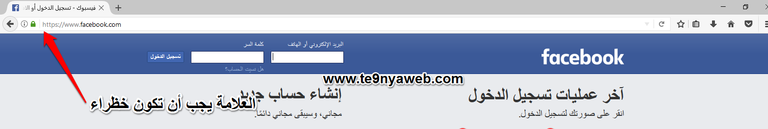 2) تأكد من علامة https يجب ان تكون خضراء مثال موجود في الصورة 3) ربط حساب الفيسبوك برقم هاتف الشخصي وكذلك تفعليه مع بريد الالكتروني لتجنب اختراق حسابك كذلك في حالة تم اختراقه تستطيع أن تسترجع حسابك بسهولة عن طريق الهاتف أو الاميل (4 تفعيل ميزة رسائل نصية وهيا ارسال رسالة نصية بمجرد دخول لحساب فيسبوك من حاسوب غير معتاد على دخول منه (5 لا تشترك ببرامج وتطبيقات المشبوهة أو تسجيل الدخول بحساب فيسبوك خاص بك 6 ) لا تضغط على روابط لا تعرف مصدرها لان ذلك يؤدي الى اختراق حسابك بسهولة تامة 7 )تثبيت برامج حماية مثل أفاست هذه تدوينة لافضل برامح الحماية من الفيروسات (8 وأخيرا طريق اختيار كلمة السر والتي يجب أن مكونة من رموز وأرقام وحروف مثال على ذلك sDf45785**/è للامانة المصدر : تقنيات ويب لا تبخلو علينا بتعليقاتكم أو استفساراتكم |