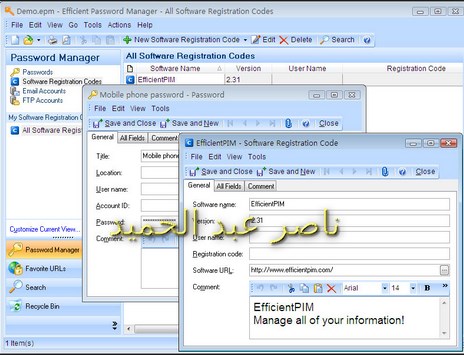 <div> ![]() Efficient Password Manager Pro 5.50 Build 540 ![]() File size: 27.2 MB هل نسيت مرات كثيرة تذكر كلمة المرور لأحد حساباتك على الإنترنت وربما بحثت كثيرا في أحد الملفات على الكمبيوتر لإيجاد كلمة السر المفقودة, لكن لماذا هذا التعب في وجود برنامج رائع مثل Efficient Password Manager والذي يقدم للمستخدمين طريقة مميزة للحفاظ على كلمات السر وإيجادها في أي وقت بسهولة. وبرنامج Efficient Password Manager 5.50 Build 536 هو مدير كلمات السر الإحترافي والذي حفظ وتخزين كلمات السر الخاصة بك في مكان آمن ومنع الآخرين والمتطفلين من الوصول إليه كما يساعد على إدارة كلمات المرور بسلاسة وإنشاء وتوليد كلمات سر جديدة لحساباتك الجديدة. ويضم برنامج Efficient Password Manager واجهة مستخدم نظيفة وبديهية من خلالها يمكنك إنشاء ملف بكلمات السر الخاصة بك مع كتابة العنوان والموقع وإسم المستخدم وبالطبع كلمة المرور للحساب ومن ثم يتم حفظ وحماية تلك المعلومات الحساسة بشكل معقد. بالإضافة لإمكانية إضافة التعليقات والملاحظات وإدراج مرفقات وروابط ملفات وتعيين مستوى الأولوية لكل ملف، فضلا عن إمكانية توليد كلمات سر صعبة يطرحها البرنامج عليك لاستخدامها بدلا من البحث عن كلمات سر قد تكون ليست بقوة وتعقيد ما يوفرها البرنامج. ميزات إضافية أخرى يوفرها البرنامج يث يتيح لك استخدام وظيفة البحث من أجل استيراد وتصدير البيانات بكل سهولة وادارة كلمات المرور بكفاءة وإنشاء نسخ احتياطية من البيانات المهمة لديك كما يمكن اختيار اللغة المناسبة لك حيث يدعم البرنامج الكثير من اللغات العالمية ودون استهلاك موارد جهاز الكمبيوتر. ![]() ![]() ![]() حمل البرنامج مباشرومعه كيجن التفعيل ![]() https://up.top4top.net/downloadf-818mocv71-rar.html نتيجه فحص الكيجن https://www.virustotal.com/#/file/d2...8897/detection ![]() في لحظة نحاول ان ننسي من نحب! لكن هناك اشخاص حتي النسيان يرفض نسيانهم فإن حاولو هم النسيان فلا نملك إللا ان نتمني لهم الخير اينما كانوا و السعادة لمن اختاروا لحياتهم ولن تموت المحبه مادام اصحابها احياء في قلوبنا مع خالص تحياتى لكم جميعا والسلام عليكم ورحمه الله وبركاته |