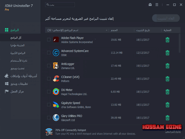 | <div> ![]() IObit Uninstaller Pro 7.4.0.8 Final ![]() IObit Uninstaller الطريقة الأفضل والأسهل لك لحذف أيّ تطبيق غير مرغوب ولا يستطيع الويندوز حذفه وبإستخدام البرنامج تضمن السرعة في الإزالة وأن يكون الحذف تاماً اًمنا حيث يلغي هذا البرنامج مخلفات الريجستري التي تتركها التطبيقات المحذوفة وما يميز البرنامج أيضا أزالة البرامج المستعصى حذفها لتوفر تلك الخاصيه به ![]() ![]() IObit Uninstaller 7 is a tool that helps you to remove unwanted programs and folders from your computer fast and easily. It removes applications from your computer, along with their leftoversIObit Uninstaller 7 can detect and categorize all of the installed programs. Moreover, it allows bulk uninstallation with just ONE clickWith “Powerful Scan” and “Forced Uninstall” features, you’ll never be bothered by leftovers or stubborn toolbars anymorelist of installed programs is automatically displayed upon initialization, in which you can view the name,size and install date of each softwareIObit Uninstaller 7 works in three steps. Firstly, it creates a system restore point, just in case something wrong happens to Windows afterward. Secondly, the program runs the application’s default uninstaller. After which it scans for leftover files and newly created registry keys (you can select which pieces you want to delete (موقع البرنامج) ![]() |