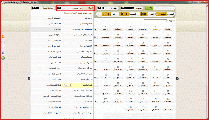 و ستقوم بالضغط على القارئ و في القائمة المنسدلة ستجد جميع القراء و المشايخ العرب و استمع لأفضل صوت يعجبك.