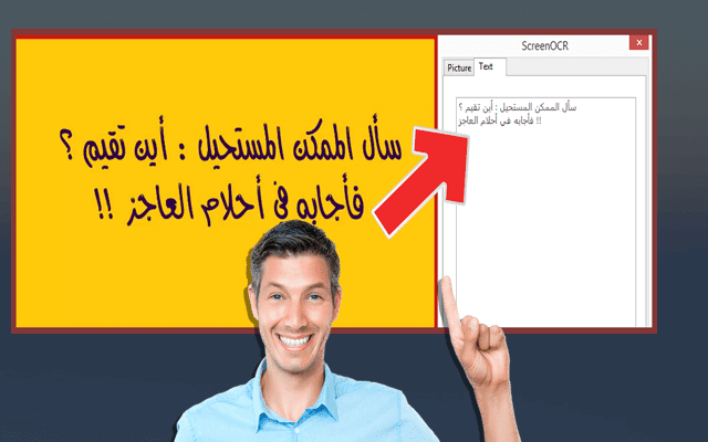 <div>إذا كانت لديك خبرة في الكمبيوتر بكل تأكيد سوف تكون سمعت عن التعريف الضوئي للحروف حيث يأخذ هذا الإجراء المهم الصور التي يوجد بها نصوص ويقوم بإستخراج هذا النص إلى صيغة قابلة للتحرير. مثال تستخدم Google OCR لفحص الكتب القديمة حيث تسمح بإتاحتها رقميا عن طريق كتب Google، أما التعريف الضوئي على الحروف من الممكن أن يكون مفيد للمستخدم في المنزل وفي بعض الأحيان قد تشاهد أمامك نص مكتوب على صورة أو بداخل فيديو أو ملف وغيرها، وهذا النص يعجبك وتريد الحصول عليه عن طريق نسخه فقط وبدون إعادة كتابته مرة ثانية وذلك توفير للوقت خصوصا إذا كان النص طويل. ولكن برنامج اليوم المجاني للويندوز قدم لكم الحل فهو يسمح لكم بإستخراج النصوص من أي شئ يعرض على الشاشة سواء كانت صور أو فيديو أو غيرها، وأيضا إذا كان محمي أو لا تستطيع تحديده والتعديل عليه وهذا البرنامج يدعم أكثر من 100 لغة مختلفة ومنها اللغة العربية. في البداية قم بتحميل البرنامج ثم قم بتثبيته على حاسوبك ولتشغيل البرنامج سوف تجد أيقونة في شريط المهام بجانب الساعة أو في مكان الإشعارات على شريط المهام فقم بالضغط عليها لتشغيل البرنامج، وبعد ذلك سوف تشاهد خيار Capture ومن خلاله تستطيع تحديد الجزء الذي يوجد به النص في الصورة من أجل إستخراجه. وخيار Preferences أو التفضيلات يجب الضغط عليه إذا كنت تريد نسخ نص عربي من اي صورة فقم بالدخول على هذا الخيار ثم قم باختيار اللغة LANGUAGE لتعديلها إلى اللغة العربية عن طريق القائمة المنسدلة. والنتيجة مثلا بعد تصوير صورة وجدتها عبر الأنترنت إستخرجت منها نص لهذه المقولة __DEFINE_LIKE_SHARE__ |