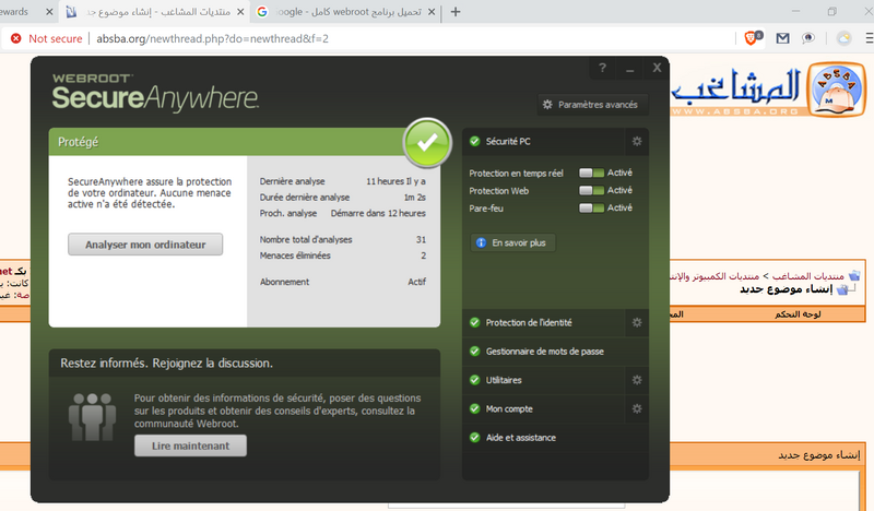 | Webroot SecureAnywhere AntiVirus 2019 - لمدة 6 أشهر مجانا | محروم.كوم | منتدى أخبار المواقع والمنتديات العربية والأجنبية | 0 | 02-09-2019 06:30 PM |