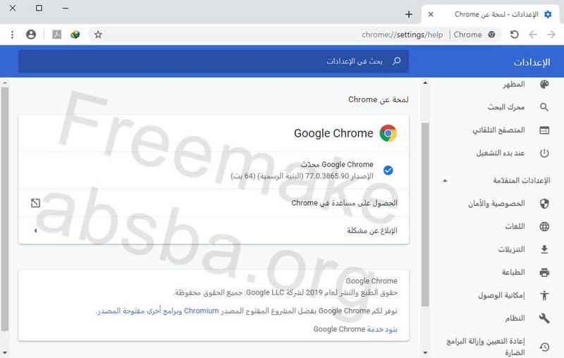 إسم الشركة : Google إسم البرنامج ورقم الإصدار : Google Chrome 77.0.3865.90 الإصدار : Final ( النهاني ) لغة البرنامج : متعدد اللغات ( إنجليزي & عربي & ألماني ... إلخ ) حجم البرنامج لكلا النظامين : 64 بت و 32 بت النسخه الأولى : ( لايمكن عمل تحديث * يجب تحميل نسخه جديده * ) : نظام 64 بت : 53.56 ميغابايت & نظام 32 بت : 52.97 ميغابايت النسخه الثانيه : ( ** يمكن عمل تحديث لها من نفس المتصفح ** ) نظام 64 بت : 55.36 ميغابايت & نظام 32 بت : 54.77 ميغابايت تاريخ الإصدار : 18 / 09 / 2019 الترخيص : مجاني متوفق مع : Windows 7 & Windows 8.1 & Windows 10 صوره للمتصفح ![]() ![]() القائمة المنسدله التي بها جميع إعدادات المتصفح ![]() جميع إعدادات البرنامج أ- الأشخاص : chrome://settings/people ![]() ب- الملء التلقائي : chrome://settings/autofill ![]() ت- المظهر : chrome://settings/appearance ![]() ث- محرك البحث : chrome://settings/search ![]() ج- المتصفح التلقائي : chrome://settings/defaultBrowser ![]() ح- عند بدء التشغيل : chrome://settings/onStartup ![]() الإعدادات المتقدمه خ- الخصوصية والأمان : chrome://settings/privacy ![]() د- اللغات : إضافة اللغات chrome://settings/languages ![]() تستطيع إضافة أي لغه أو البحث عنها ![]() ذ- التنزيلات : chrome://settings/downloads ![]() ر- الطباعة : chrome://settings/printing ![]() ز- إمكانية الوصول : chrome://settings/accessibility ![]() س- النظام : chrome://settings/system ![]() ش- إعادة التعيين وإزالة البرامج الضارة : chrome://settings/reset ![]() ص- الإضافات : chrome://extensions ![]() ض- إختصارات لوحة المفاتيح ( الإضافات ) : chrome://extensions/shortcuts ![]() صوره لإثبات إصدار البرنامج ( Google Chrome 77.0.3865.90 ) ( النسخه الأولى ) : لاتستطيع تحديث المتصفح ![]() ( النسخه الثانيه ) : تستطيع تحديث المتصفح إلى إصدارات أحدث ![]() أولا : تحميل النسخه الأولى ( لايمكن عمل تحديث من نفس المتصفح لأي إصدار جديد ) ( * يجب تحميل نسخه جديده * ) لتحميل البرنامج لنظام 64 بت ( رابط مباشر من الشركة ) : إضغط هنا أو هنا أو هنا لتحميل البرنامج لنظام 32 بت ( رابط مباشر من الشركة ) : إضغط هنا أو هنا أو هنا لتحميل البرنامج لنظام 64 بت ( رابط على موقع mediafire ) : إضغط هنا لتحميل البرنامج لنظام 32 بت ( رابط على موقع mediafire ) : إضغط هنا ثانيا : تحميل النسخه الثانيه ( يمكن عمل تحديث من نفس المتصفح لأي إصدار جديد ) ( ** تحديث من نفس المتصفح ** ) لتحميل البرنامج لنظام 64 بت ( رابط مباشر من الشركة ) : إضغط هنا لتحميل البرنامج لنظام 32 بت ( رابط مباشر من الشركة ) : إضغط هنا لتحميل البرنامج لنظام 64 بت ( رابط على موقع mediafire ) : إضغط هنا لتحميل البرنامج لنظام 32 بت ( رابط على موقع mediafire ) : إضغط هنا |