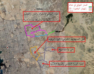 | بحيرة المسك .. بين الإحتمالات والمصير !! بقلم :- ماجد الهريس * إبن جدة البار كثر في الأونة الأخيرة الحديث عن بحيرة المسك * وقد إزدادت المخاوف بعد كارثة سيول الأربعاء * وزيادة المخاوف تأتي من عدم الثقة المتنامي بين المواطن والمسؤولين بالأمانة * الأمانة درجت على أن تطمئننا عن البحيرة يومياً حيث يقول المسؤولين فيها بأن البحيره لايوجد منها خطر * وهناك تلاعب واضح في الألفاظ والمصطلحات فالتطمينات تأتي دائماً على ذكر (( السد الترابي دون الإشارة للسد الأخر )) * والمخاوف تنطلق بين الحين والأخر بمصادر متعدده منها الدفاع المدني تأتي على ذكر السد الإحترازي حيث تأتي التقارير على أنه يوجد تسرب يذكر أحياناً على انه (( بسيط )) وتذكرني هذه الكلمة بالتطمينات السابقه حيال مياه السيول وكلنا نعلم أن جدة فقدت المئات من سكانها * ولا أريد أن أنظر للموضوع بخوف شديد ولكن من يأكله الحنش يخاف من الحبل * عوداً على ذي بدء من المفترض أن يكون السد الإحترازي آمناً جداً وذلك بسبب بعده عن البحيره حيث يبتعد عن البحيره مسافة 11 كيلو متر على أرتفاع 18 متراً * في حين أن السد الترابي المطمئن حسب تصريحات الأمانة يلامس البحيره مباشره من جهة الشرق . إذن ماهي الحقيقة ؟ هل البحيرة خطرة جدا ؟ وأين تكمن خطورة البحيرة ؟ وماهي الحلول المتوقعة ؟ .. سنحاول أن نجيب عن هذه التساؤلات بالتفصيل مع الشرح بالصور بعد فضل الله . نبدأ معاً بحقيقة البحيرة * فيما يلي نبذة عن بحيرة المسك : الموقع : شرق الخط السريع – بمحاذاة طريق هدى الشام – الممتد من كوبري بريمان باتجاه مكة المكرمة * المسافة : تبعد عن كوبري بريمان بنحو 17 كيلو متر * كمية المياه الملوثة والمحتجزة بالبحيرة حتى نهاية عام 2005م : يقدر بنحو 17.000.000م3 سبعة عشرة مليون متر مكعب حسب تقديرات هيئة المساحة الجيولوجية السعودية ووصلت لنحو 30.000.000 م3 ثلاثين مليون متر مكعب عام 2008 * عمق المياه بالبحيرة : يصل في بعض مناطق البحيرة الى أكثر من 10متر وتمتد البحيرة على مد البصر في بطن تجمع عدة أودية بين الجبال وبطول يمتد الى أكثر من 4 كيلو متر وعرض أكثر من 1.7 كيلو متر * ويوجد سدين ترابيين احدهما يلامس البحيرة من الجنوب ارتفاعه 10 متر والأخر على بعد 11 كيلو متر من البحيرة وأرتفاعة 18 متر * هل تعلمون كم منسوب المياة عند السد الثاني والذي يبعد عن البحيرة 11 كيلو * وصل منسوب المياة حاليا في السد إلى 14 متراً * وفيما يلي تصوير جوي يبين السدين الترابي والإحترازي وأيضاً إرتفاع المياه حسب ميزان قياس الماء في البحيرة شكل 1 شكل 2 ![]() شكل 3 ![]() شكل 4 الأمانة تذكر بأن البحيرة لن تستقبل وايتات الصرف الصحي (( أكرمكم الله )) بعد ثلاثة أشهر حسب تصريح رئيس لجنة الأمطار في الأمانة * وهذا كلام غير منطقي وغير معقول حيث أن الشبكات الرئيسيه للصرف الصحي لم تكتمل فضلاً عن أن الشبكات الفرعيه لم يتم منها شي حتى اللحظه ولن يتم العمل بها حتى تكتمل الشبكات الرئيسيه وهناك عوائق كثيرة منها على سبيل المثال التنسيق مع الجهات كالكهرباء والماء والهاتف * الأمر ليس بهذه السهوله * في الشكل التالي نرى شبكات الصرف الصحي قبل 20 سنة ولازالت هي كما كانت تقريباً . شكل 5 إذن مما هو واضح وجلي لدى الجميع ان أمانة جدة تعمل عكس التيار أو على سطح القمر أو أننا نحن نعيش في مدينة ليست جدة وفاكرين انفسنا في جدة * المثل يقول (( قيس قبل تغيص بعد الغرق ماينفع القيّس )) الغرق حصل وكلنا نعلم ذلك ولكن أشك أنهم قاسوا المخاطر أو توقعوها أو حتى فكروا أن يفكروا فيها وهنا تكمن المشكلة . وهنا لابد من إيجاد حلول سريعة وجذرية لإنتشال جدة بأمانتها من الكوارث السابقه والمحتمله لاسمح الله * وصلني مؤخراً أن مجموعة بن لادن تم الأتفاق معها لحل أزمة البحيرة وهذا شيء مطمئن نوعاً ما وذلك بسبب إمكانيات الشركه المعروفه وأيضاً أن المصدر يقول أن الملك أوكل هذه المهمه لشركة بن لادن * ويقال أيضاً أن أحد أبناء بن لادن يتواجد هناك يومياً ويجتمع مع المسؤولين لحل هذه المشكله أتمنى أن يوفق في ذلك * ولكن ماهي الحل