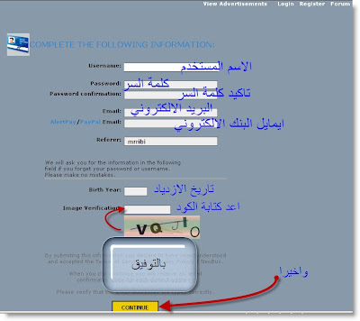 اقوى وافضل الشركات الربحية المجانية في العالم من 1 الى 2 سنت لاضغطة نضام دفع تلقائي وفوري الحد الادنى لادفع 2 دلار تدعم البنوك التالية: ----------------------------------------------------------------- الاثبات ![]() ![]() ![]() ------------------------------------------------------------------- شرح التسجيل اولا اضغط Register ![]() املا البيانات التالية ![]() سترسل لك الشركة رابط التفعيل الا ايمايلك اضغط عليه للتفغيل للتسجيل الدخول اضغط login ![]() هده الصورة للتوضيح القائمة ![]() عند الضغط على View Advertisement ستضهر الاعلانات على الشكل التالي ![]() ![]() ![]() __DEFINE_LIKE_SHARE__ |