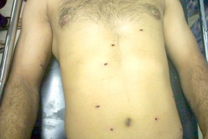 والد مصاب كرزكان (حسين علي السهلاوي، 25 عاماً)، أنه سيتم نقل ابنه اليوم (الثلثاء)، من مركز شرطة مدينة حمد (دوار 17) إلى المستشفى العسكري، وذلك لاستخرج شظية واحد من كتفه، فيما لاتزال أكثر من 65 شظية في أنحاء مختلفة من جسمه.