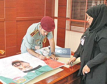 | سلطان النعيمي يوقع على رسالة الوفاء لرئيس الدولة رأس الخيمة - “الخليج”: ![]() استقبل العقيد سلطان يوسف النعيمي، مدير عام الإقامة وشؤون الأجانب برأس الخيمة بمكتبه صباح أمس، فريق نادي التطوع التابع لمركز التنمية الاجتماعية برأس الخيمة ضمن حملته الخاصة بجمع التواقيع لرسالة الوفاء لصاحب السمو الشيخ خليفة بن زايد آل نهيان رئيس الدولة، حفظه الله، بمناسبة عودته سالماً إلى أرض الوطن . ووقع العقيد سلطان النعيمي على الرسالة التي تحمل صورة صاحب السمو رئيس الدولة، إعراباً عن اعتزازه بالمشاركة في هذه الحملة، مشيداً بمبادرة أعضاء فريق نادي التطوع التي تعكس الحس الوطني والانتماء للوطن والاعتزاز بالقيادة الحكيمة للدولة . ............... الخليج ................. __DEFINE_LIKE_SHARE__ |
