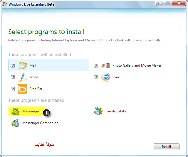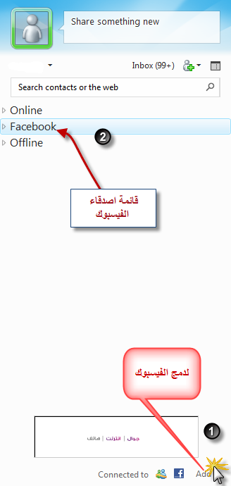 تم اصدار برنامج ماسنجر 2011 وفية مميزات مهمة سنتطرقها في الشرح بأذن الله اكثر شي عجبني شريط ادوات Bing بعادتي لا احبذ شريط الادوات والتولبارات جميعها لاكن اول مرة انصح بشريط ادوات وهوا الصادر مع المسنجر الجديد وسنتطر لهذا السبب في اخر الشرح تنوية : الاصدار مازال بيتا وغير مستقر فية بعض المشاكل وغير عربي . تم اصدار النسخة الرسمية والعربية تحديث الروابط بتاريخ :26-12-2010 ,, السبب :اصدار نسخة اخرى محسنة من ماسنجر 2011 اصدار رقم (15.4.3508.1109) ولمن حمل مسبقاً يحدث لنسخة المحسنة لتحميل النسخة كاملة وتثبيتها لايلزم اتصال بالنت اضغط هنا لتحميل اللغة العربية اضغط هنا لتحميل اللغة الانجليزية لتحميل النسخ حزمة تثبيت وتثبيتها يلزم اتصال بالنت اضغط هنا لتحميل النسخة العربية اضغط هنا لتحميل النسخة الانجليزية 2- تم وضع خيار الدخول للفيسبوك عن طريق المسن ويعرض بنفس الاطار ومحادثتهم كما كانهم مضافين بالمسن ومتباعات الجديد دون الذهاب للفيس بوك لأظهار الخيارات في صفحة المحادثة ![]() طلايقة حظر ( بلوك ) جميلة مع وصول كلام المحضور عند الارسال لك وهو محظور ![]() الجميل جداً واكثر ماشدني في المسنجر هو شريط الادوات تبع محرك بحث Bing