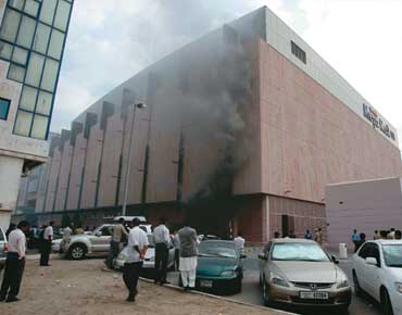 صباح امس في اطفاء حريق في احد المحولات الرئيسية في مركز ميجامول الشارقة تسبب به ماس كهربائي، حيث يغذي المحول الذي احترق 10% من الطاقة الكهربائية للمركز.