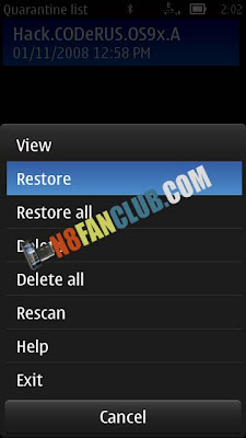 2. Launch Norton ![]() ![]() 3. Go Options- Anti-Virus - Quarantine list ![]() ![]() 4. Go Options - Restore, accept prompt ![]() ![]() ![]() ![]() 5. Exit application, delete from App manager (Symantec Symbian Hack). Also delete c:\shared\ folder. 6. Install (N8FanClub.com)RomPatcherPlus_3.1.sisx from the download package below. 7. Launch and apply patches: - Open4all for full access to file system - Installserver for installing any unsigned applications (if you see a red cross on install server patch in Rom Patcher - get installserver.exe from here and enable OPEN4ALL patch from ROM Patcher then move installserver.exe to C:/Sys/Bin via X-plore.) ![]() Set patches to auto if needed (Options - Add to auto) Click below to download (N8FanClub.com)NortonSymbianHack_S60v3_s60v5_S^3_S ^4.zip |