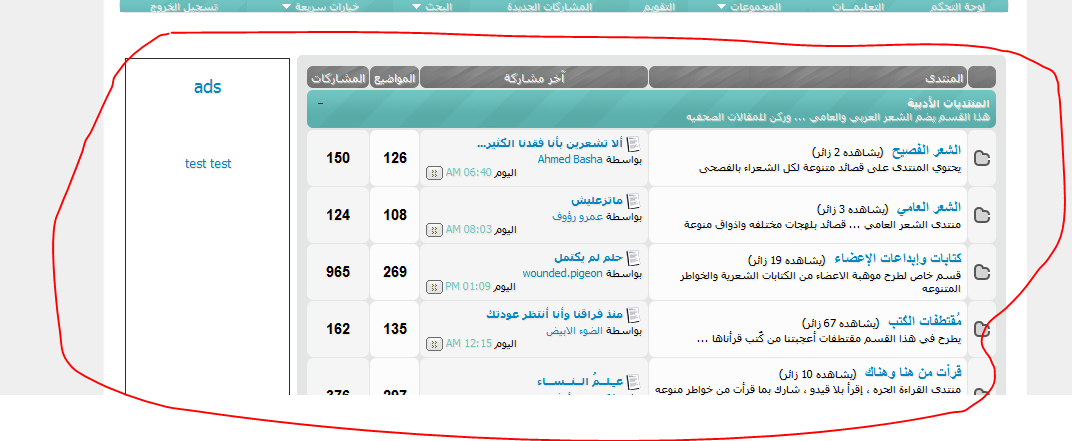 السلام عليكم ورحمه الله تعالى وبركاته لو سمحتو اخواني عندي سؤال خاص بالقائمه الجانبيه انا طبقت الموضوع ده [شرح] : كود القائمة الجانبية للجيل الثالث تطوير معهد عرف بي بي لكن عند التطبيق القائمه تأخذ من مساحه استايل نفسه وانا اريدها تكون خارج الاستايل كما في ترايد نت دي صوره من منتداي زي ماحضراتكم شايفين الجزء اللي فيه كلمه ads دي هوا القائمه الجانبيه ومقتصه من ستايل المنتدى فاهو لو حجم الاستايل اصلا 80 ... فاهو الان 60 لان دخل فيه القائمه انا اريد اخراج القائمه خارج المنطقه بتاعت جسم الاستايل ايه بقا التعديل المناسب على الكود الموجود في الموضوع ده ؟ http://www.traidnt.net/vb/traidnt1939491 دي الصوره : |