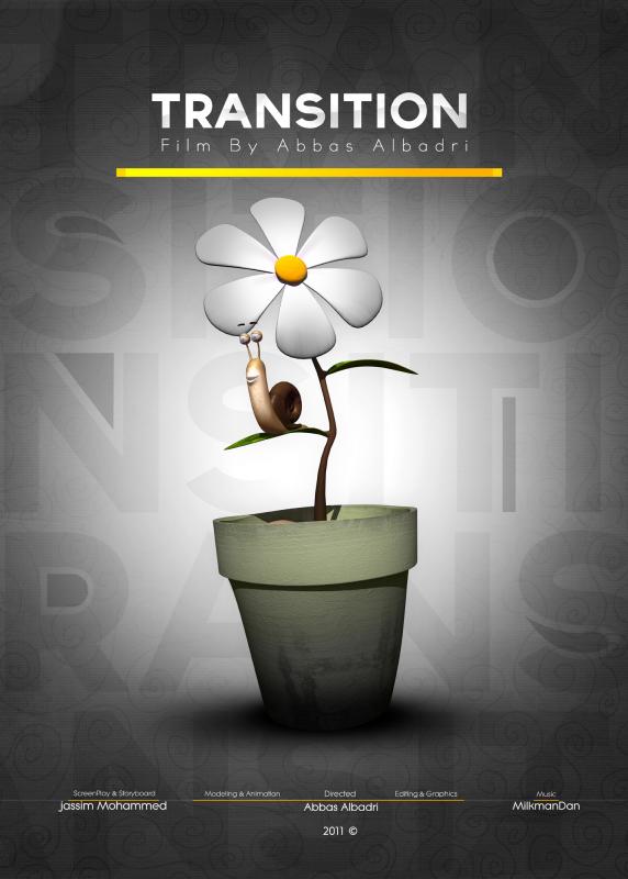 مشاركتي في فيلم انتقال في مهرجان تروب فست أربيا TRANSITION -- Tropfest Arabia 2011 Finalist هذا العمل هو الاول لي في مجال الاخراج وايضأ في الرسوم المتحركة للعلم ان العمل بسيط ولكن اخذ مني الكثير من الوقت بسبب عدم التفرغ !! البرامج المستخدمة Autodesk Maya 2011 Adobe Premiere Pro CS5 Adobe After Effects CS5 Adobe Photoshop CS5 صورة من الفيلم ملصق الفيلم للمشهادة على Youtube واعتذر عن اختيار البادئة الغير مناسبة :nosweat: |