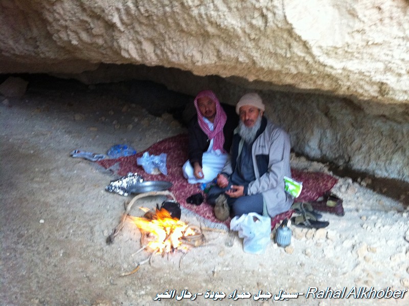 وقد رافقني الأخوة محمد الفارس وطلال الخليوي في هذه الرحلة التي ابتدأناها صباح الثلاثاء وعلى مسافة 120 كيلومتر غرب الخبر وعند مفرق جودة أخذنا الطريق المحاذي بين جبل حمراء جودة والطريق السريع لنعبر المسافة بين كثبان رملية وأرض طينية هشة كانت مزعجة جداً وقت الامطار وكادت أن تسبب لنا المتاعب لولا فضل الله وحفظه. -1433هـ-رحال الخبر ![]() كان الجو باردا والهواء قويا متسارعا والغيوم متلبدة والرذاذ مستمر بديم جعلها الله أمطار خير وبركة. ومن التساهل في ركوب الرمال أحيانا وظناً منّا أن الأمور سهلة ووقت الأمطار في بداياتها عادة تكون الرمال مصيدة بحيث تقسى الرمال السطحية بفعل الماء لسماكة 10 سنتمتر ومن الأسفل تكون هشة وإن ركزت العجلات في مثل هذه الحالة كما حصل لنا فالويل والويل لمن كان حظه كحظنا.. ![]() مكثنا تقريبا في محاولتين للخروج من هذه الرمال الناعمة والتي سقطنا فيها لساعة ونصف ولم تسعفنا الألواح التي معي عادة في مثل هذا الوضع بجعلها أسفل العجلات، لكننا بالنهاية وبعد تنفيس العجلات ووضع الالواح التي تمنع انغراس العجل لم يكن لنا بد من أستعمال الجك الكبير والذي رفع السيارة من الدعامية لنضع الألواح بكل سهولة ونخرج بعدها حامدين الله على أن فكّنا من تلكم الحادثة المزعجة ولتي أخرتنا كثيراً. ![]() ![]() كان أستعمال الألواح الصفراء غير مجديا بسبب نعومة رمال المنطقة. ![]() وكأن أستعمال الجمبو جك هو الملاذ الأخير بعد الأستعانة بالله ![]() بلغ التعب منّا مبلغاً كبيرا بسبب الرياح الشديدة الباردة والرمال السافية على وجوهنا ورذاذ المطر الخفيف وانتهينا بحمد الله من تجربة وأتجهنا الى جبل حمراء جودة لنكمل زيارتنا الى تلك المناطق والوقت ضحى تقريبا الساعة 11 صباحا . وعندها بدأ المطر بالأزدياد في الهطول . ![]() وصولنا لأصبع حمراء جودة الشهير وهو علم بالمنطقة ويقع الى الجنوب من جبل حمراء جودة بين الرمال والأرض الطينية . ![]() ![]() وحينها كان الوقت ملائما لتناول وجبة الغذاء والاحتماء بأحد كهوف حمراء جودة المتعددة وأخترت منها كهف الرحال وأطلقت عليه التسمية لأكتشافي له ولم يعرفه أحد من قبل وكان ملاذا آمنا بأمتياز لتجاويفة الممتدة للداخل وبعدها عن تيارات الهواء وصعود ونزول بين تجاويف تشعرك وكأنك في باطن الارض ، كما أن نهايته عبارة عن صالة متسعة ارتفاعا وأما مساحة الارض في خمسة في خمسة أمتار ولكن السقف مفتوح بأرتفاع 30 مترا . ![]() مدخل الكهف من جهة الجنوب وفتحته غير واضحة للعيان بسبب سقوط أحد الأحجار عليه. ![]() صورة للصالة المظلمة ماعدا فتحتها من السقف على أرتفاع 30 مترا. ![]() مع احد الزملاء لأعداد المكان وترتيب الغذاء. ![]() وشبة حطب الغضا المتوفر بالمنطقة لتناول الشاي الحار بهذا الطقس البارد ![]() محتمين بصخور الكهف الكبيرة عن تيارات الهواء والمطر ![]() جلسة كايفة لنا في أحد تجاويف الكهف الرائعة. ![]() ![]() ياهلا والله محييكم تفضلو تدفّوا من البرد. ![]() صورة لمدخل الكهف وأحد الأخوة بالصورة. ![]() __DEFINE_LIKE_SHARE__ |