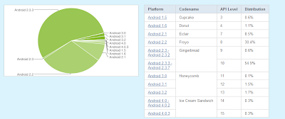 في دراسة بينها موقع مطوري أندرويد أكدت أن 85% من أجهزة الأندرويد الآن تعمل علي نظامي 2.3 ونظام 2.2 بسبة 54.9% لـ gingerbread و 30.1% للـ froyo بينما تحتل الصدارات الأقدم 8 % من الأجهزة ويذكر أن نظام 2.1 نادرا ما يوجد علي جهاز أندرويد.