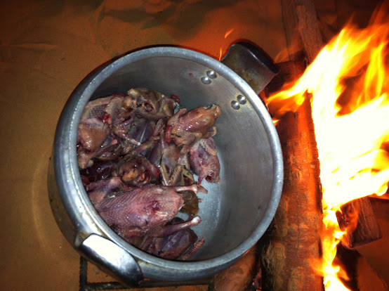 | بسم الله الرحمن الرجيم السلام عليكم ورحمة الله حي الله الجميع كلٍ باسمه هذي صور لطلعة من الطلعات بعد صيد عدد طيب من القوقسي قلنا نزله لكم 1 تنظيف الطيور 2 ما شاء الله مشحم 3 المجموع 4 نحطه بالكاتم دون أي اضافة 10 دقائق 5 تقطيع الخضرة شرايح 6 فك الكاتم (ونلاحظ انه جمع مرق) 7 نحط الطيور فوق الخضرة 8