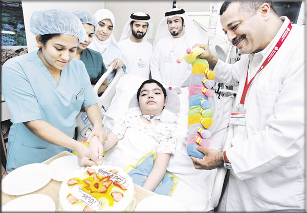 | حمودي يرقد في العناية المركزة بمستشفى القاسمي منذ 9 سنوات الشارقة - عايدة عبدالحميد: صرخات مكتومة وأصوات متكررة خافتة أطلقها الطفل الإماراتي محمد المازم ( 11سنة)، واعتلت وجهه المشرق ابتسامة تنم عن بهجته وسروره .كانت عيناه شاخصتين تجاوزتا الحدود ونظراته تترقب ،وهو يشاهد حوله الطاقم الطبي والتمريضي بغرفة العناية المركزة بوحدة الأطفال في مستشفى القاسمي بالشارقة، وهم يقطعون قالب الحلوى احتفاء بعيد ميلاده، الذي درجوا على تنظيمه سنويا طوال 9 سنوات قضاها بينهم في هذه الغرفة تحديدًا، تأكيداً لمحبتهم الكبيرة له، وبأنهم لا ينسون تاريخ ميلاده الذي ظل راسخاً في مخيلتهم، وهو دليل واضح على اهتمامهم وعنايتهم به . ![]() “حمودي” كما يطلق عليه دخل إلى المستشفى بعد أن صدمته سيارة دفع رباعي في21 أغسطس ،2003 وهو يتنزه مع والده في منطقة الرماقية بالشارقة، وظل بها 15 يوما بعد عمل الإسعافات اللازمة، وقام ذووه بنقله الى المستشفى الأمريكي بدبي، وأثبت التقرير الطبي أنه مصاب بقطع في النخاع الشوكي، إضافة إلى شلل رباعي، وظل في المستشفى هناك لمدة سنة كاملة، وعقب ذلك تم تحويله الى مستشفى الجزيرة في أبوظبي أملاً في العلاج والشفاء، وظل هناك نحو ستة أشهر، وبسبب بعد المسافة قررت أسرته إعادته ثانية إلى مستشفى القاسمي . والدة حمودي قالت ل “الخليج”: بداية أشكر طاقم التمريض للعناية بابني طوال هذه السنوات، وأجدد شكري وامتناني لهذه اللفتة الرائعة بالاحتفال بعيد ميلاده، فهو أصبح جزءاً أصيلاً منهم، كما أشكر الدكتور فيصل شاهين مدير مركز العمالة الوافدة في الصناعية بالشارقة لمساهمته في تنظيم هذا الحفل . وأضافت: بعد رحلة علاج ابني داخل الدولة التي استمرت 24 شهراً، سافرنا إلى مركز متخصص بالمانيا مرتين لعلاجه على حساب الدولة، وقضينا خلال الزيارة الأولى 7 أشهر، وكان العلاج جيداً والتأهيل خاصاً جداً، كما سافرنا لبانكوك في رحلتين، تم خلالهما أخذ 4 حقن علاج الخلايا الجذعية، وكانت استجابته للعلاج ضئيلة . واستطردت أم حمودي: من خلال قراءاتي المستمرة وتواصلي مع أكثر من 100 مركز طبي متخصص في مختلف بقاع العالم كان الرد يأتيني مؤكداً بأن ابني يحتاج إلى علاج طبيعي مكثف في مركز متخصص، وآمل أن تتحقق أمنيتي لأن العلم في تقدم مستمر، وهذا ما ألحظه من متابعتي لتطورات الطب الحديثة وبحثي الدائم لعلاجه، أعتقد أن علاجه لابد أن يكون متوفراً في مكان ما بالعالم، وحتى إن كانت هذه أمنية لي أو حلماً آمل أن يتحقق في أقرب وقت ممكن لأراه قد تحسن ولو قليلاً ليأتي ويعيش بيننا أنا ووالده وهو لم يعش طفولته، وحلمي الكبير أن يتعافى ويشفى ليلعب مع شقيقته هدى “7 سنوات”، التي تسألنا دائماً عن سريره الصغير الذي ظل في غرفته ومتى يعود لينام فيه، وكلنا نتوق إلى تحقيق هذا الأمل . واختتمت: إن التسليم التام بقضاء الله وقدره والرضا بما كتب الله علينا ولنعلم أن الله عز وجل أرحم الرحماء بنا جميعاً ومهما بلغت درجة عطفنا وحبنا لأطفالنا لن تكون ذرة في رحمة الرحمن الرحيم بهم . فريق العمل بهذه الوحدة المكون من 27 من هيئة التمريض الذين تناوبوا على رعايته الصحية والعناية به، كتبوا وبأحرف من نور شهادة إنجاز وتفان تجاه هذا الطفل الذي ظل راقداً في سريره بحساب لغة الأرقام مدة تعادل 3240 يوماً، ما انعكس إيجاباً على وضعه الصحي حسب ما ذكرت فاطمة غانم مديرة التمريض في المستشفى، فهو يتلقى عناية فائقة ومركزة باعتباره مريضاً ينام على جهاز التنفس الصناعي، . وعن حمودي قال ابوبكر العيادي باللطيف مسؤول وحدة التمريض في العناية المركزة للأطفال، هو بمثابة ابننا وأصبح جزءاً لا يتجزأ من تفاصيل حياتنا اليومية، وأشيد باهتمام فريق العمل برعايته الصحية . من جانبه، قال عبيد النابودة مدير الاعلام والعلاقات العامة في مستشفى القاسمي: حمودي يعتبر من أهم الشخصيات بالمستشفى، وهو معروف باعتباره من أقدم المرضى، والجميع يحبه، لدرجة أن كل من يمر بالقسم لا بد أن يطل ويلقي عليه السلام سواء من 