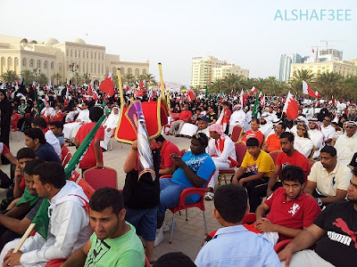 | وتجمع الفاتح "ذاب الثلج وبان المرج مسيرة الوفاق وتجمع الفاتح "ذاب الثلج وبان المرج " ( الجزء الاول) ![]() في يوم السبت الموافق 19 مايو كنت على موعدٍ مع تجمع الفاتح تحت شعار (خليجنا واحد وشعبنا واحد) والذي دعا إلىه ائتلاف الجمعيات السياسة: جمعية المنبر الاسلامي (إخوان) - جمعية الاصالة الاسلامية (سلف) - تجمع الوحدة الوطنية (صوفية وأشاعره وقوميين) بالاضافة إلى بعض الجمعيات الهامشية الأخرى كجمعية عدالة والميثاق والصف والوسط وغيرها من أجل دعم الإتحاد الخليجي. إعلان تجمع الاتحاد الملفت في الأمر هو الإعلان المفاجئ لهذا التجمع لأن المتتبع لشؤون ائتلاف هذه الجمعيات يعي جيداً أنها في شِقاقٍ واختلافٍ دائم على تفاصيل التفاصل، وأن ائتلافهم هذا لا تحركه إلا أوامر السلطة، بحيث أصبح حالهم كمن تجمعه المصلحة وتفرقه العصا "عصا السلطة". والذي جعلني أميل لهذا التحليل هو الحملة الإعلامية الحكومية المكثفة والتي بدا جلياً أنها تسّوق للإتحاد بصورة مبالغ فيها مقارنةً ببقية دول مجلس التعاون الخليجي ووصل بها الأمر إلى ما يشبه الاستجداء لا الطلب. حيث كان الإعلام مُسيّراً لدعم التوجه للوحدة بل وتم إعطاء انطباعاً عاماً للمواطنين بأن مؤتمر القمة التشاوري سيتم فيه إعلان وتوقيع إتفاق الإتحاد بين البحرين والمملكة العربية السعودية وربما دولة ثالثة، كما تجلى هذا الأمر في برامج التلفزيون الرسمي والإذاعة والصحافة الرسمية وشبه الرسمية والتي حولت كل برامجها للتسويق لهذا الخبر السعيد، بل وحتى تغريدات كبار المسؤولين ركزت على هذا الجانب ولعلي أقتبس تغريدة المستشار الإعلامي لجلالة الملك الأستاذ/ نبيل الحمر الذي قال فيها: "صباح الخير يا أهل الخليج العربي في هذا اليوم المبارك وقادتنا يجتمعون في الرياض فانتظروا البشارة وأخبار الخير وبشائر الإتحاد والوحدة ". في نظري أن الغرض من هذه الحملة الإعلامية الغير مسبوقة من قِبل الحكومة كان إظهار مطلب الإتحاد كمطلب شعبي بحريني، ولتأكيد ذلك كان لابد من تحشيد كبير يُظهر مدى التأييد والرضا والقبول الشعبي بل والفرح الغامر والسرور لهذا الإتحاد في وقت كانت فيه جمعيات المعارضة قد بدأت التحشيد لمسيرة مضادة ترفض الإتحاد الخليجي، فهل تحقق المراد وهل ذاب الثلج وبانت المروج الخضراء التي أرادها الحكم؟؟ خرجت من المنزل في تمام الساعة الرابعة والنصف عصراً متوجهاً إلى المنامة، وقد انتابني القلق لظني أني خرجت متأخراً، فربما أصادف إزدحاماً أو قد لا أجد مكان لي بين الجموع أو ربما لا أتمكن من ركن سيارتي بموقف قريب، خاصةً وأن التجمع الأخير لصحوة الفاتح كان قد صاحبته هالة كبيرة وقدّر القائمون عليه الحضور بمائتي ألف في وقت قدّرت وكالة روتيرز الحشود بثلاثين الفاً فقط وهو رقم كبير في تلك المساحة الصغيرة. وصلت إلى تقاطع مدخل ميناء سلمان وكان الشارع سالكاً والمرور طبيعي جداً، ثم وصلت إلى الجفير ورجال المرور متواجدين لتنظيم الحركة المرورية وتمت تهيئة الأرض الكبيرة المقابلة لسور جامع الفاتح كمواقف للسيارات وكانت تحوي صفين من السيارات فقط! مما جعلني أظن أن الوقت مازال مبكراً أو ربما تكون الفعالية قد تم تأجيلها لبعد صلاة المغرب. بدأت بالسير بإتجاه الجامع وحولي بعض العائلات تترجل من سياراتها، وقد اتشح الأطفال بالأعلام البحرينية والسعودية ووصلت إلى المدخل وكان هناك بعض الآسيويين يعرضون الأعلام والتذكارات للبيع. وأصبت بالدهشة لرؤيتي مواقف السيارات الداخلية للجامع شبه خالية إلا من بعض المارة هنا وهناك. وصلت للساحة المجهزة بالمنصة ولاحظت أن الحضور هزيل حيث كانت هناك أعداداً كبيرة من الكراسي الخالية حتى تلك اللحظة تنتظر من يجلس عليها. بحثت لي عن مكانٍ مناسب أستطيع منه التقاط بعض الصور بشكلٍ واضح وبينما كنت أكتب بعض التغريدات فاجأني أحد الآسيويين وهو يحمل بيده مغلفاً يحوي صور للقيادة السياسية يقوم بتوزيعها فأخذت نسخاً منه، وهنا التبس الأمر عليّ هل يقوم الائتلاف بتوزيع صور القيادة 