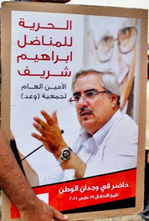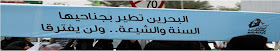 http://www.alshaf3ee.blogspot.co.uk/...st_27.html?m=1 الاثنين، مايو 28، 2012 مسيرة الوفاق وتجمع الفاتح "ذاب الثلج وبان المرج " مسيرة الوفاق وتجمع الفاتح "ذاب الثلج وبان المرج " ( الجزء الثاني) ![]() يوم الجمعة الموافق 18 مايو 2012م كانت نسبة الرطوبة عالية جداً وكان الجو غائماً مما خفف من حرارة الشمس في مسيرة "لبيك يا وطني" التي دعت إليها جمعية الوفاق الوطني الإسلامية، والتي تمثل أكبر طيف معارض في البحرين، وبسبب الشحن الإعلامي المتواصل بين فريقي المعارضة والموالاة، وتراشق الإتهامات فيما بينهما بتحريف الصور وفبركة المونتاج لتصوير الفيديو بغرض إظهار التجمعات أكبر من حجمها الحقيقي، وكذلك استخدام شعارات الكراهية والتسقيط، قررت حضور مسيرة المعارضة وتجمع الموالاة بنفسي لغرض التوثيق ولغرض آخر وهو رؤية الجوانب المغيبة التي لا يبديها الإعلام الرسمي، ولا أدعي أنني قمت بتغطية كل جزئية من جزئيات المسيرة أو التجمع، ولكني سأنقل ما تيسر لي ملاحظته. وقد قمت بعرض تغطيتي لتجمع الموالاة الذي عقد يوم السبت في الجزء الأول من الموضوع، وعليه سيكون هذا الجزء من نصيب المعارضة. وصلت شارع البديع بعد مرور بعض الوقت على بدء المسيرة، وكان الإزدحام شديداً على جانبي الطريق، اقتربت من دوار الدراز ولم يسمح لي أفراد شرطة المجتمع بالدخول أو الوقوف في الساحات الفارغة في الأمام، مما اضطرني للرجوع بالاتجاه المعاكس من الشارع وأوقفت سيارتي في المسار الأيمن من الشارع الرئيسي، حيث اتخذت السيارات هذا المسار كموقف نظراً للإزدحام الشديد. انتظرت في السيارة قليلاً لالتقاط أنفاسي لوجودي في قلب الحدث، حيث أنني في مسيرة التاسع من مارس كنت أراقب عن بُعد، أما هذه المره فقد قررت أن أكون أكثر قرباً .. أكثر قرباً من مكون رئيسي في المجتمع تم تصويره على أن الإقتراب منه "خطر" .. لأن لديه أجندات خفية .. أجندات إقصاء .. أجندات مذهبية مرتبطة بالخارج .. ذلك الخارج الذي خطف العراق من حاضنته العربية السنية، وأصبح رهينة لحاضنة فارسية تتخذ من المذهب غطاءاً لإلتهامنا .. هذا ما كان الإعلام يرينا إياه ويريدنا أن نصدقه ونعمل به .. استرجعت كل هذه الأفكار وأنا أهم بالنزول من السيارة. عند وصولي للمسيرة استوقفتني الأناشيد الثورية الحماسية التي تصم الآذان وكأنها تحشيد حربي، ربما هذا الشعور بدأ يساورني لدى رؤيتي لشعار المسيرة كما نراه هنا .. ![]() وهي صورة لشخص يحيط رأسه بعصابة تمثل علم البحرين ويرفع يده للتحية وكأنها تحية عسكرية، وربما قد توحي للبعض أنه يحمل مسدساً، وهذه الأناشيد الثورية التعبوية نلاحظها بوضوح في المسيرات التي ينظمها حزب الله اللبناني والتي تأخذ الطابع العسكري بسبب التوجه الثوري للحزب. ذكري لحزب الله في هذا المقام قد يسبب الضيق والإمتعاض للبعض، إذ سيعتبرون ذكر حزب الله إقحاماً في المسيرة البحرينية، وهذا ليس القصد وإنما الشيء بالشيء يُذكر وتشابه الأساليب والأناشيد الثورية لها كثير من التماهي مع ثورية حزب الله وأهازيجه. المسيرة كانت مهيبة وجادة، حيث ساد الموقف الإصرار الواضح والتحدي الشديد والجرأة الكبيرة مع إختفاء عامل الخوف والتوجس، علت هتافات الجموع بشعارات تسقيط الحكومة وبعض رموزها و دوت بالمكان متناغمةً مع الأناشيد الحماسية والثورية، والملاحظ أيضاً أن العناوين البارزة والهتافات انقسمت الى أربعة أقسام رئيسية : القسم الأول: وهي النسبة الأكبر من اللافتات والصور وحتى المجسمات والهتافات المؤيدة للمرجعية الدينية وعلى رأسها الشيخ عيسى قاسم، لدرجة أن الأمر التبس عندي، فلم أميز هل هذه المسيرة هي مسيرة "لبيك يا وطني" أم مسيرة "لبيك يا عيسى قاسم"!، حيث كان الجميع يحمل صورة الشيخ، الصغير والكبير النساء والرجال وحتى الأطفال ذوو الأربع والخمس سنوات، وكانت الهتافات تعطي شخصية الشيخ هالة كبيرة من التقديس، وللإستدلال على ذلك أذكر بعض الأمثلة من الهتافات والشعارات: قاسم أنت الوطن – تاج على رأس الوطن – قاسم قد أتيناك ملبين ولأمرك طائعين فلك أن تقول ل