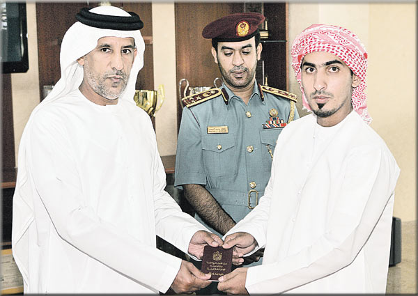 تسليم الجنسية لـ 22 من أبناء المواطنات في رأس الخيمة رأس الخيمة - سائد الخالدي: أشاد اللواء ناصر العوضي المنهالي الوكيل المساعد لشؤون الجنسية والإقامة والمنافذ في وزارة الداخلية بسعي صاحب السمو الشيخ خليفة بن زايد آل نهيان رئيس الدولة، حفظه الله، من خلال قرار ومكرمة سموه بمنح أبناء المواطنات جنسية الدولة، في تحقيق المساواة الاجتماعية بين أبناء الدولة وبناتها وفتح الباب أمام هذه الشريحة لخدمة الوطن ورفع رايته ودفعه للمضي قدماً في طريق النجاح والتميز . ![]() وأضاف خلال تسليمه صباح أمس الجنسية إلى 22 من أبناء وبنات المواطنات من المستفيدين من مكرمة صاحب السمو رئيس الدولة الخاصة بمنح جنسية الدولة لأبناء المواطنات في مقر الإدارة العامة للإقامة وشؤون الأجانب برأس الخيمة بحضور العميد سلطان النعيمي مدير عام الإدارة، والعميد غريب الحوسني مدير عام المنافذ والمطارات، والعقيد مطر بن عميرة الشامسي مدير عام الجنسية، والعقيد يوسف إسماعيل نائب مدير الإقامة وشؤون الأجانب، وعدد من ضباط الإدارة: إن تسليم جنسيات الدولة لهذا العدد من المستفيدين في رأس الخيمة يشكل الدفعة الأولى من المرحلة الثانية من أبناء المواطنات ممن انطبقت عليهم الشروط اللازمة لاكتساب الجنسية والتي تشمل 930 شخصاً على مستوى الدولة، لافتاً إلى أن هذه الخطوة تأتي كترجمة فعلية لتوجيهات الفريق سمو الشيخ سيف بن زايد آل نهيان نائب رئيس مجلس الوزراء وزير الداخلية، الداعية إلى تطبيق قرارات صاحب السمو الشيخ خليفة بن زايد آل نهيان، الذي يكمل مسيرة البناء والعطاء التي خطها المغفور له بإذن الله الشيخ زايد بن سلطان آل نهيان رحمه الله . وأكد اللواء المنهالي أن القيادة الرشيدة للدولة حرصت ولا تزال على تسخير إمكانياتها كافة، لخدمة أبناء الوطن وتوفير احتياجاتهم، وهو ما يتطلب من المستفيدين من هذه المكرمة السامية رد جزء من الجميل لهذا الوطن المعطاء، من خلال البذل والعطاء والتفاني في العمل والارتقاء في السلم التعليمي، بما يسهم في استكمال مسيرة النهضة الشاملة التي تعيشها دولتنا تحت مظلة الاتحاد ورعاية صاحب السمو رئيس الدولة وإخوانه أصحاب السمو أعضاء المجلس الأعلى للاتحاد حكام الإمارات، مشدداً على أن جنسية الدولة ولاء وانتماء لهذا الوطن تحمل أصحابها مسؤولية بذل كل غال ونفيس للحفاظ على منجزات الدولة وعلى مسيرتها في ركب التقدم والازدهار، تحت مظلة القيادة الرشيدة التي لا تألو جهدا في خدمة مواطنيها والمقيمين على أرضها . وأوضح أن الجولة التي يقوم بها في مختلف إمارات الدولة لتسليم جنسية الدولة لمستحقيها ممن استوفوا الشروط المطلوبة، وبلغوا سن الثامنة عشرة من العمر تأتي تماشياً مع توجيهات صاحب السمو رئيس الدولة الساعية لإدخال الفرحة في نفوس وقلوب أبناء المواطنات المستفيدين منها ولمشاركته أفراحهم بهذه المكرمة الغالية على جميع أبناء الإمارات وليس على المستفيدين منها فقط . ![]() ولفت الوكيل المساعد لشؤون الجنسية والإقامة والمنافذ في وزارة الداخلية إلى أنه من المتوقع أن يتم حصول دفعة جديدة من أبناء المواطنات في رأس الخيمة على جنسية الدولة قبيل حلول شهر رمضان المبارك، مشيراً إلى أن الحاصلين على جنسية الدولة اليوم يندرجون ضمن دفعات متتالية سيتم الإعلان عنها مستقبلاً بعد استيفاء الشريحة المستهدفة من القرار من الاشتراطات المطلوبة والمعلن عنها مسبقاً . محمد سليمان السعدي (32 عاماً) أحد أبناء المواطنات الحاصلين على جنسية الدولة توجه في بداية حديثه بعظيم الشكر والامتنان لمقام صاحب السمو الشيخ خليفة بن زايد آل نهيان، على هذه المكرمة السامية التي تندرج ضمن سلسلة متواصلة من مكارم سموه، التي تصب في مصلحة الوطن والمواطن، وتسهم في تحقيق الاستقرار الأسري والاجتماعي للمستفيدين منها . من جانبها توجهت زينب حسين أحمد، موظفة، بأسمى آيات الشكر والعرفان إلى صاحب السمو رئيس الدولة، حفظه الله، وإلى أخيه صاحب السمو الشيخ محمد بن راشد آل مكتوم