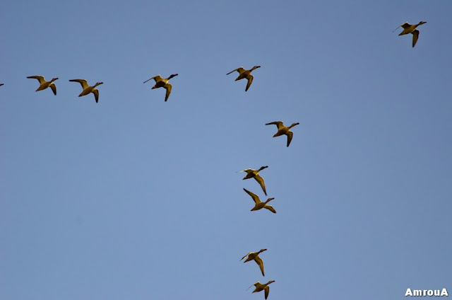 | (((((( يرجى عدم الرّد حتى انتهاء الموضوع )))))) الموضوع والصور حصريا لمنتديات مكشات ولا يسمح لأي منتدى باستخدامها إلا بإذن مسبق بسم الله الرحمن الرحيم وبه نستعين أحبتي : أختم معكم الجزء الأخير من موسعتي للطيور الزائرة والمهاجرة إلى وسط المملكة وتحديداً جنوب مدينة الرياض ... وهذا الجزء هو لجميع الطيور المائية أو التي تعيش على مسطحات مائية ... ======================= البطّ الخضيرى - ابوطوق - ابوعقيرب ( يسمى علميا mallard ) من أكثر أنواع البط انتشارا في العالم ،، رأس الذكر منه لونه أخضر والأنثى بنّيّة اللّون ويتميّز بالطّوق الأبيض على الرّقبه ،، ويشترك الذّكر مع الأنثى بخطٍّ ازرقٍ على الجناح قبيل الطرفين (كما نشاهد بالصور) . تفضل المياه كثيفة الأشجار غالبا غذائها :البذور ، الجوز والتوت ، والنباتات والحشرات والمحار أعلى - أنثى بالغة :s ذكر بالغ ![]() الأسم العربي :بط الخضاري الأسم الأنجليزي :Mallard الأسم العلمي : Anas platyrhynchos حالة التواجد: -مقيم- متكاثر -Status passage: resident-breeder ============================ ![]() ![]() الأسم العربي : أبو مجرفة الأسم الأنجليزي :Northern Shoveler الأسم العلمي : Anas clypeata حالة التواجد: زائر شتوي Status passage: winter visitor =============== ![]() أنثى بالغة الأسم العربي :بط الحذّف الصّيفي الأسم الأنجليزي : Garganey الأسم العلمي : Anas querquedula حالة التواجد: زائر شتوي Status passage: winter visitor ================ ![]() ![]() الأسم العربي :البط المصري الأسم الأنجليزي :Egyptian Geese الأسم العلمي : Alopochen aegyptiacus حالة التواجد :زائر شتوي \ Status passage wenter visitor : ================= ![]() الأسم العربي :الحمراوي - الكستنائي أبيض العين الأسم الأنجليزي :Ferruginous Duck الأسم العلمي : Aythya nyroca حالة التواجد :زائر شتوي \ Status passage wenter visitor : =================== __DEFINE_LIKE_SHARE__ |